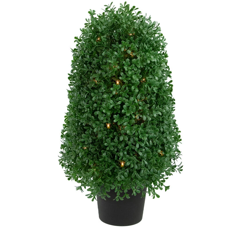18″ Pre-Lit Artificial Boxwood Cone Topiary Tree with Round Pot Clear Lights