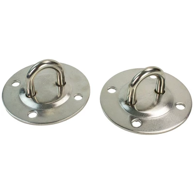 Enhance your relaxation space with this mount kit set. Designed for both style and durability, this kit offers a sleek and modern silver finish that seamlessly blends with any decor. Crafted from high-quality materials, it provides robust support, ensuring a safe and enjoyable swinging experience. With easy installation, you can effortlessly create your own cozy retreat indoors or outdoors. Whether you’re seeking a peaceful reading nook or a soothing spot to unwind, our ceiling mount kit elevates your hanging chair to new heights of comfort and elegance.Product Features:Ceiling mount bracketsDurable, sturdy and anti-rustCan hold up to 1000 lbs. (500kg)Need to use M10 drill bit to punch screw (not included)Dimensions: Expansion screws: 2.5″ (approximately)Plate: 3.5″ diameter Plate thickness: 0.12″ deep (not including hook)Plate hook opening: 1″ deepMaterial(s): nickel plated steelNote: Set of 2 includes: 2 plates and 8 screws, hammock chair not included