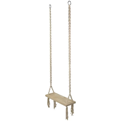 Add some style to your patio decor with this swing chair. A fun addition for your family and friends to enjoy at home while outdoors. This swing is designed with ivory ropes to hang and swing with a wooden seat. Great for indoor or outdoor use.Product Features:Ivory rope hanging swing chairFeatures a rope design with round metal ringsComes with attached wooden seat1-person swingRecommended for adults, children need to be supervisedRecommended for outdoor useDimensions: 1.25″H x 21.75″W x 8″DEach rope measures 57″ longMaterial(s): cotton/woodNote: swing chair, metal rings and hanging ropes only – hanging hardware are not included