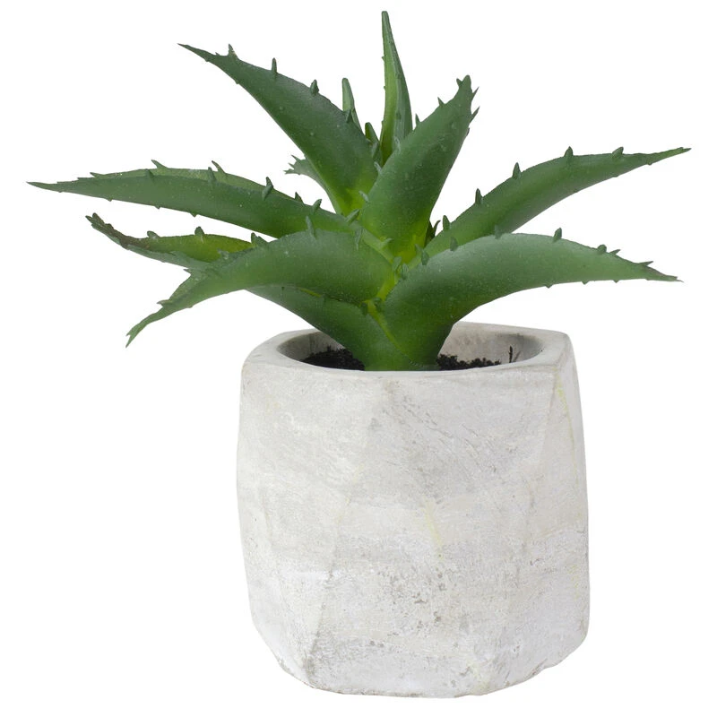 6″ Artificial Potted Aloe Succulent in Cement Pot