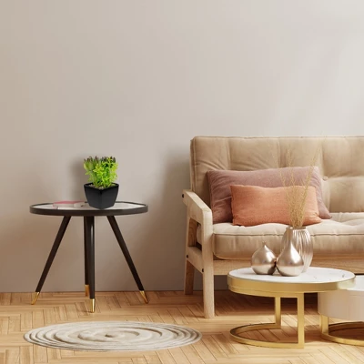 Succulents have become a growing trend as they are easy to care for and require little attention. This artificial succulent is even better as it looks real but requires no maintenance. The green succulent is nestled inside a black pot. Grab yourself one or two of these succulents today to add some character to your home or office.Features: Artificial succulent in a potNestled inside of a square black potSet inside of faux dirt and pebbles for stabilityPerfect way of decorating any space subtlyDimensions: 6″H x 3″W x 2.5″DMaterial(s): plastic