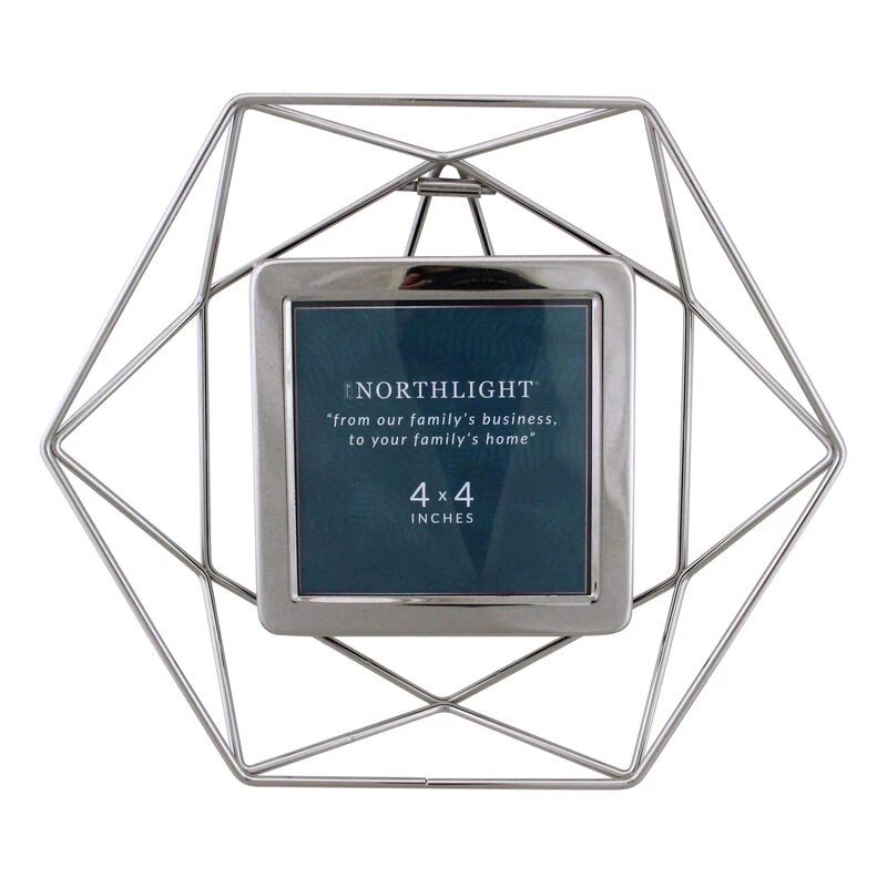 9.5″ Contemporary Hexagonal 4″ x 4″ Photo Picture Frame – Silver