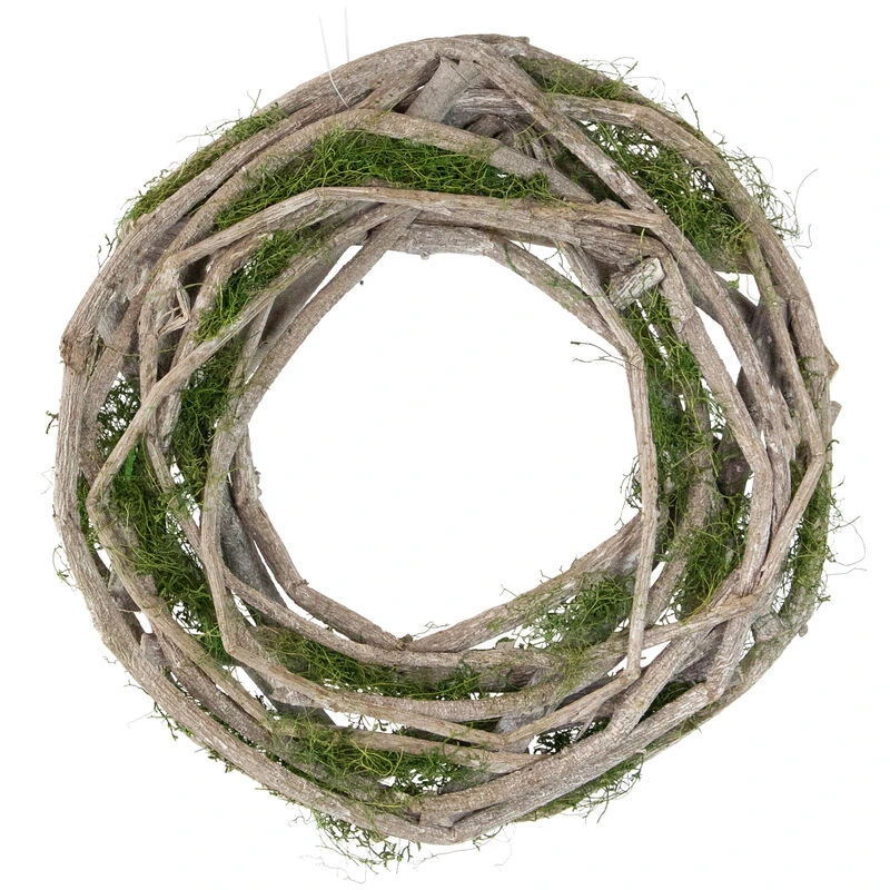 Green moss and white twig artificial wreath