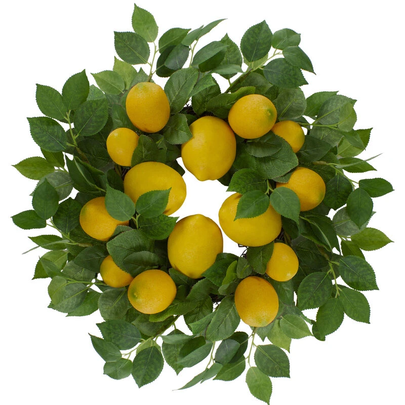 Lemons and Leaves Artificial Spring Wreath Yellow – 18-Inch