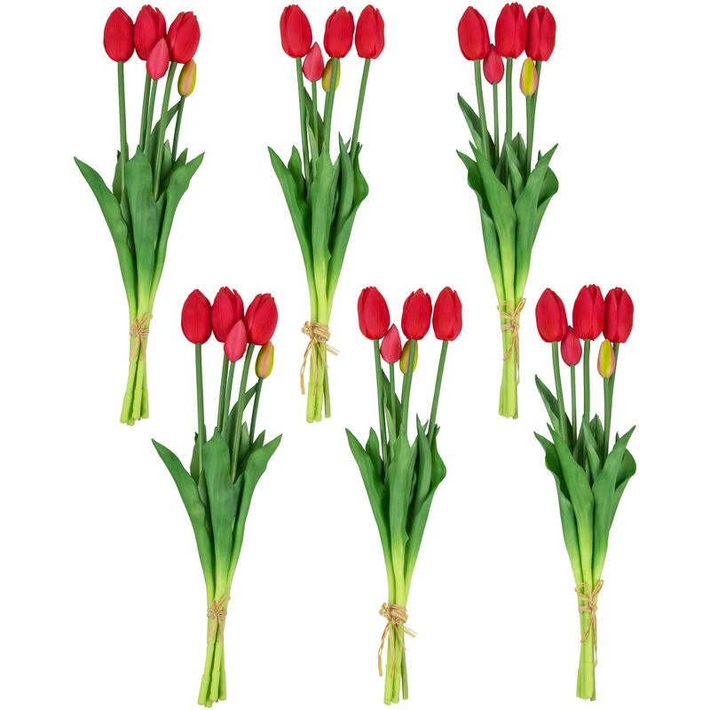 Set of 6 Ruby Red Tulip Artificial Floral Bundles 18″