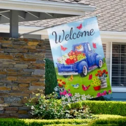 Northlight Welcome Blue Pickup Truck With Spring Flowers Outdoor Garden Flag 12.5″ X 18″